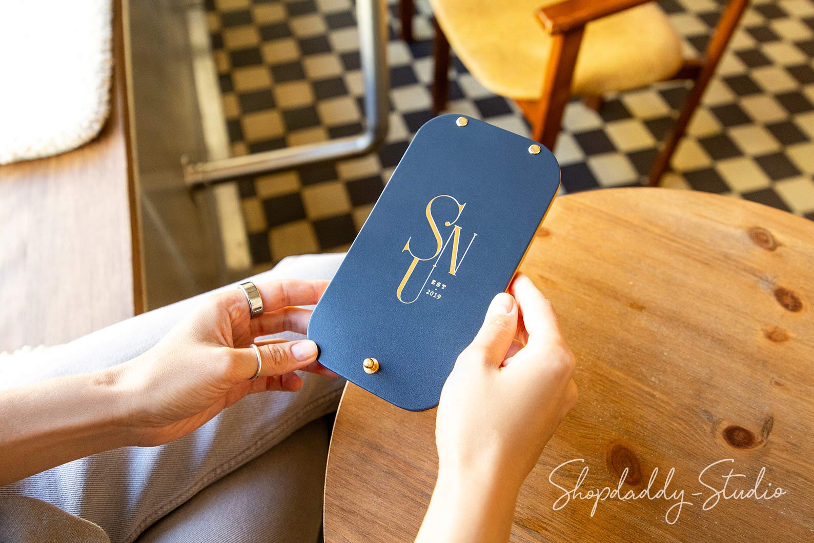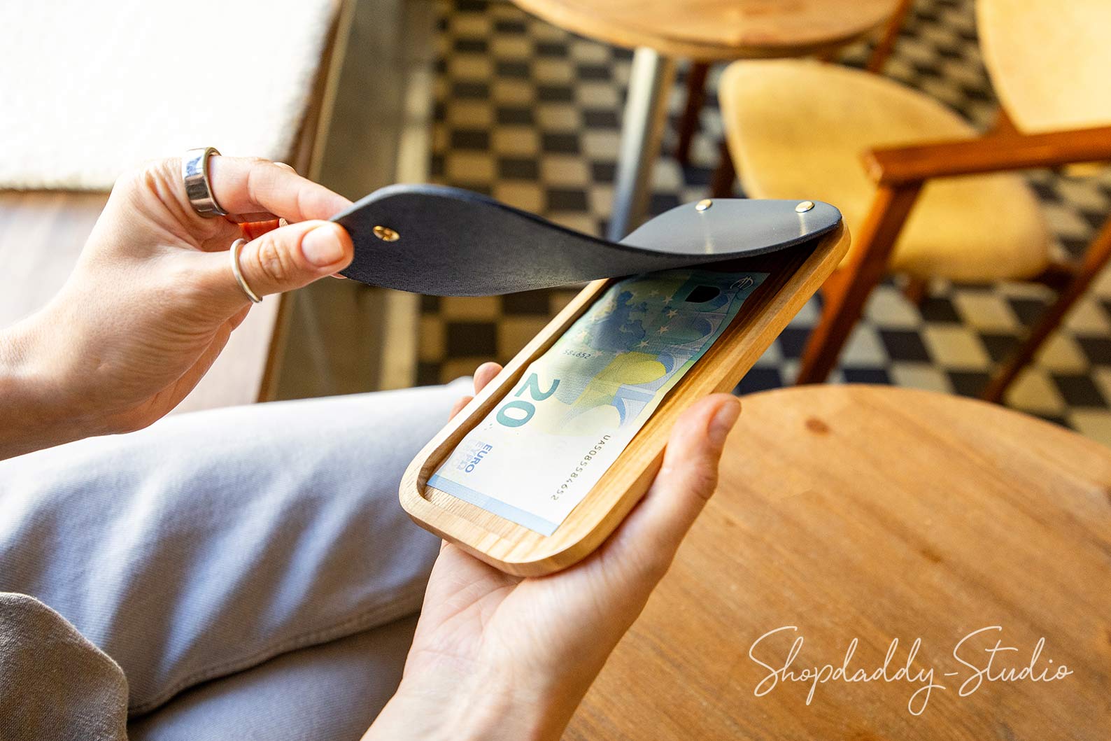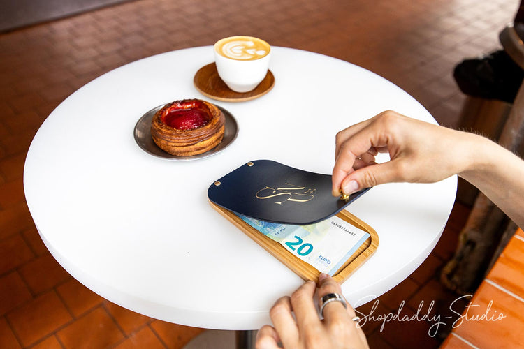 Die Rechnungsmappe wurde speziell für Restaurants, Cafés und Bars entworfen und besteht aus dickem, vollnarbigem Leder und Eschenholz. Der Rechnungsordner besticht durch eine wunderschöne natürliche Holzmaserung und ein minimalistisches Design, das sich harmonisch in jedes Interieur einfügt. Der praktische Druckknopfverschluss sorgt für Komfort sowohl für das Servicepersonal als auch für die Gäste. Die Mappe ist so dimensioniert, dass sie alle gängigen Banknoten aufnehmen kann. Sie kann mit Ihrem Logo oder beliebigen Informationen personalisiert werden und ist damit das perfekte, individuell gestaltbare Servicebuch für Ihren Betrieb.