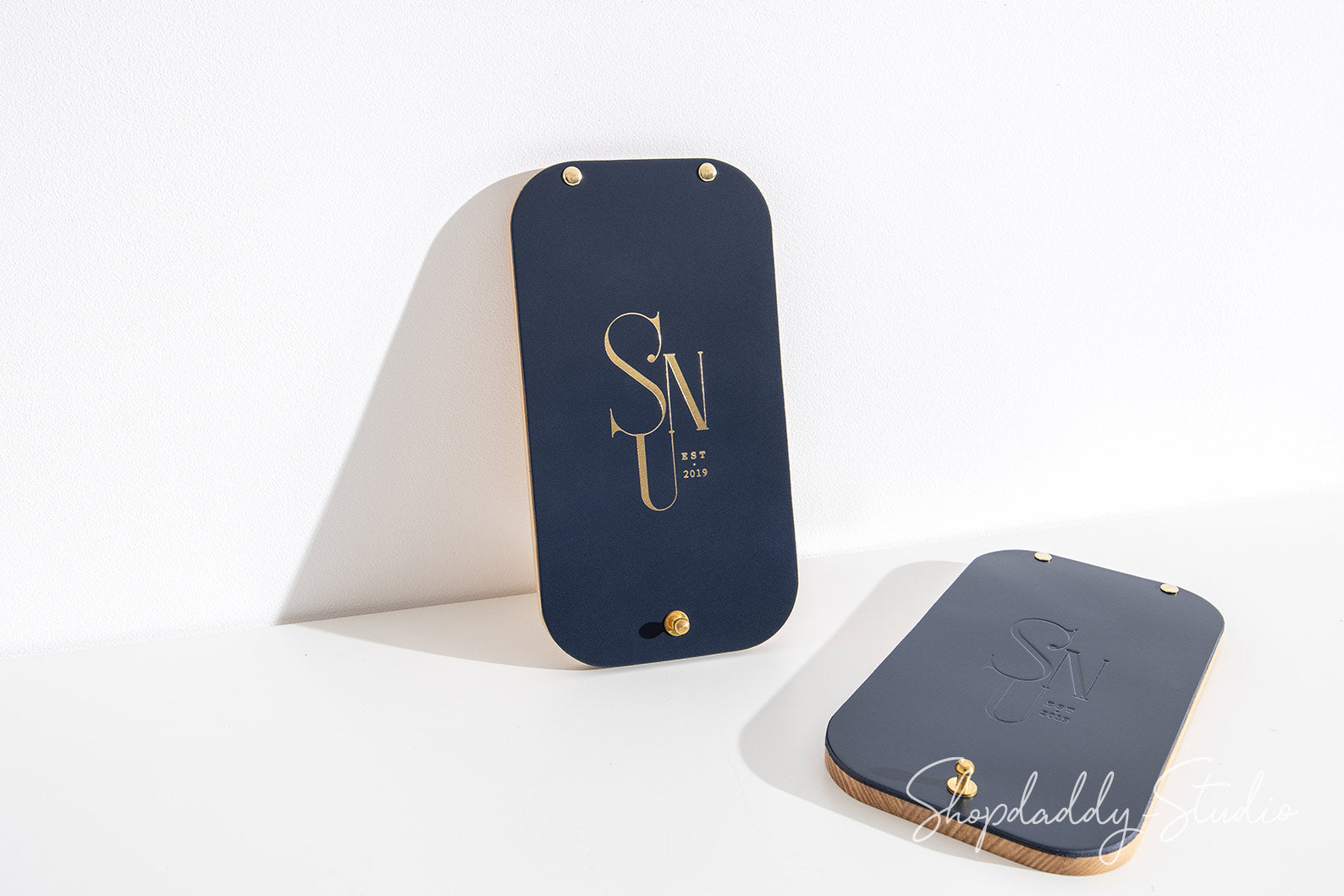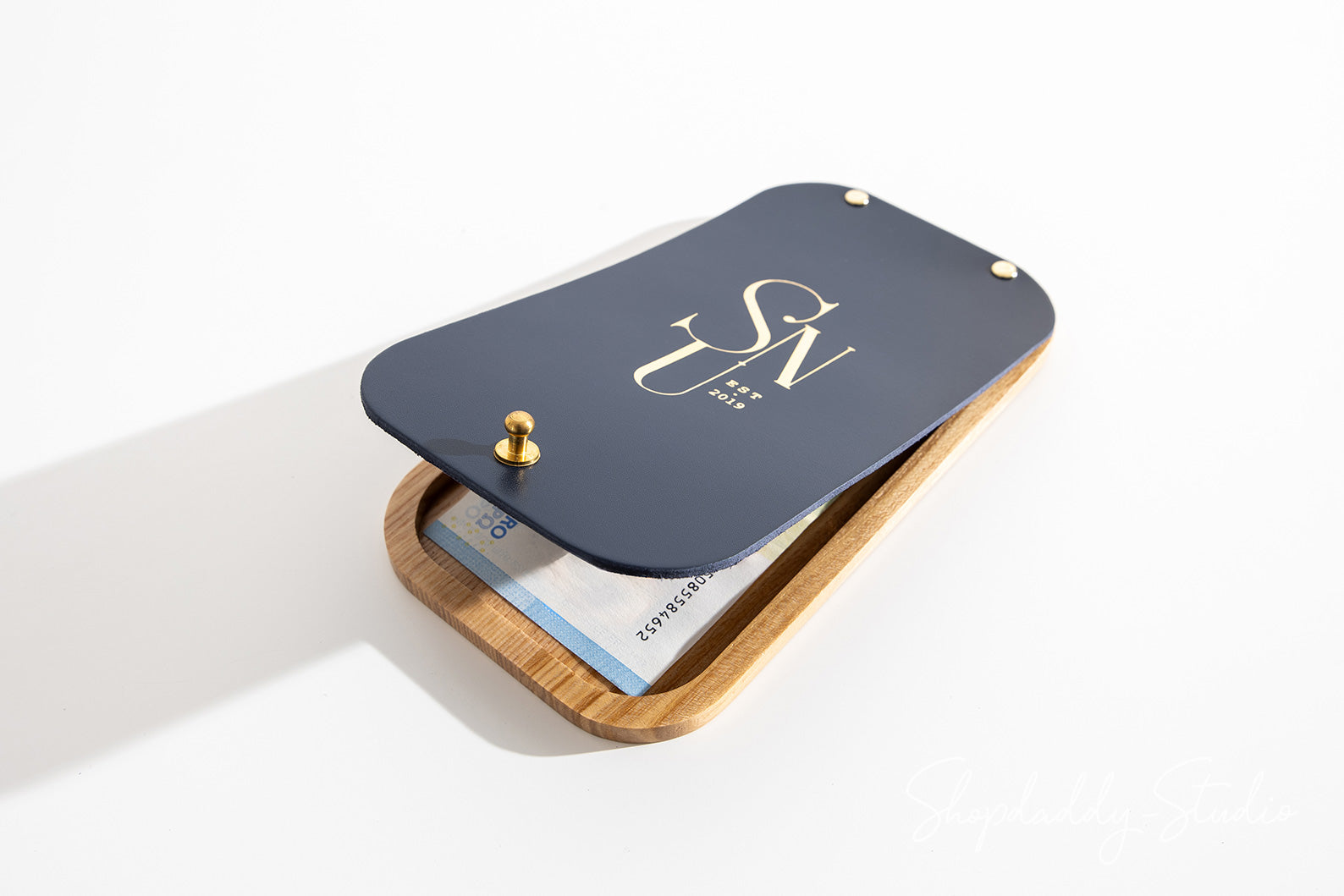 Dunkelblau Leder-/Eschenholz-Rechnungsmappe mit Logo