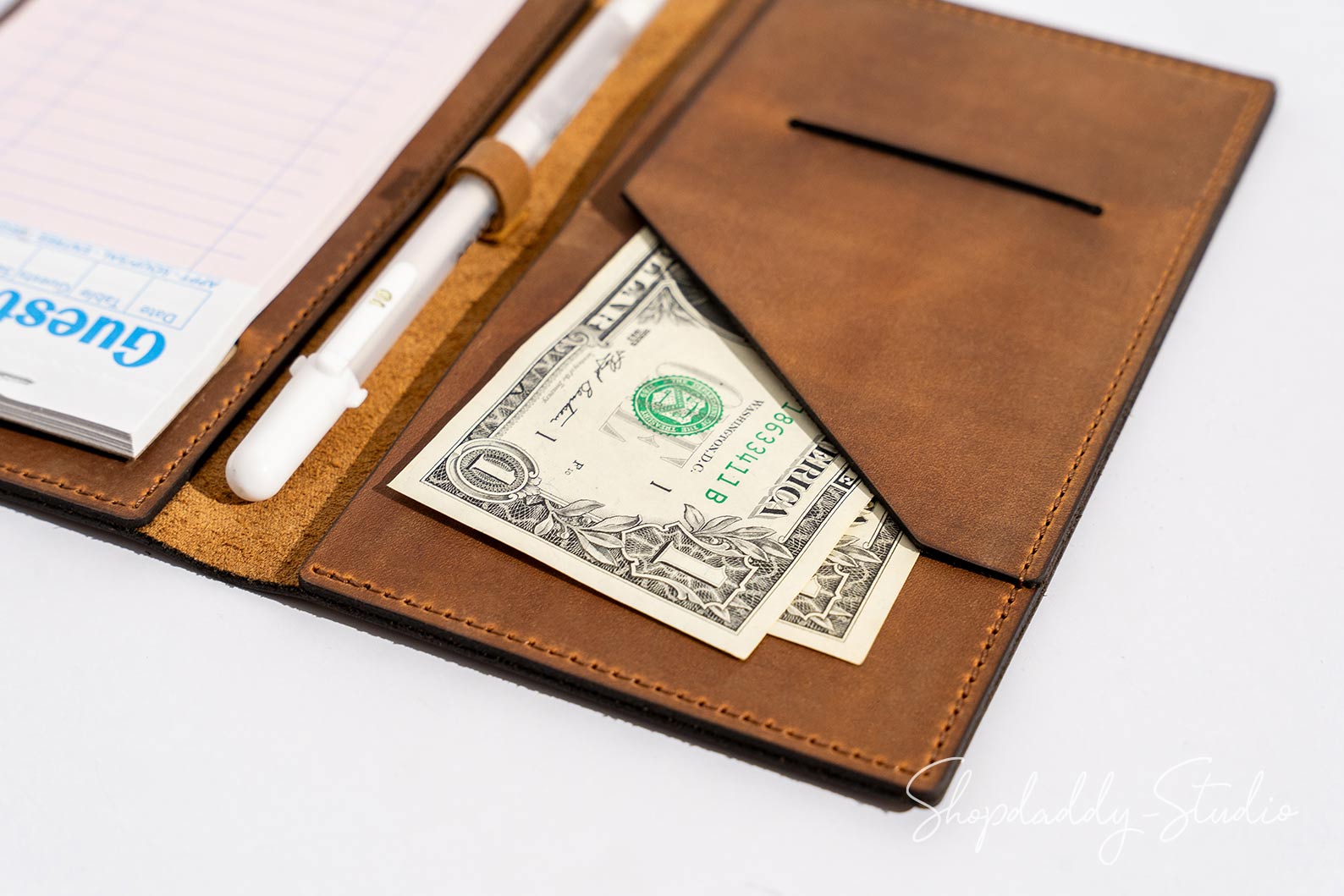 Rostfarbene Leder-Serverbuch mit Stiftschlaufe für Kellner