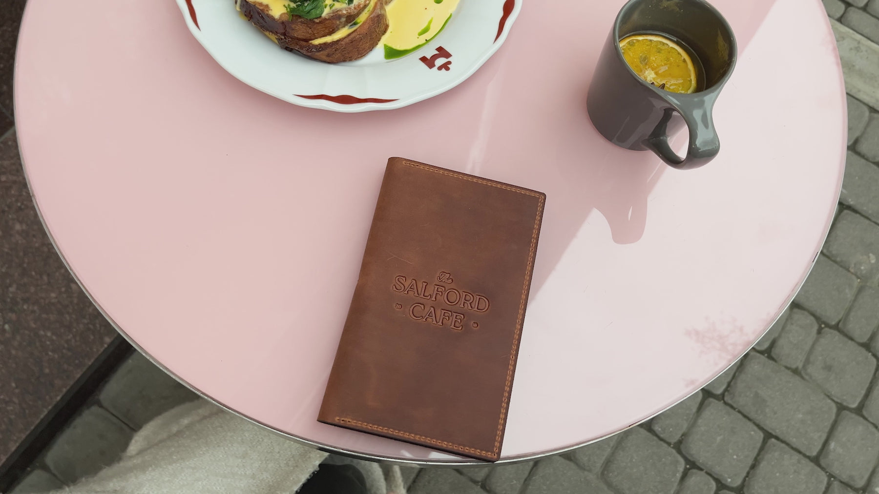 Rostfarbene Leder-Serverbuch mit Stiftschlaufe für Gastronomie