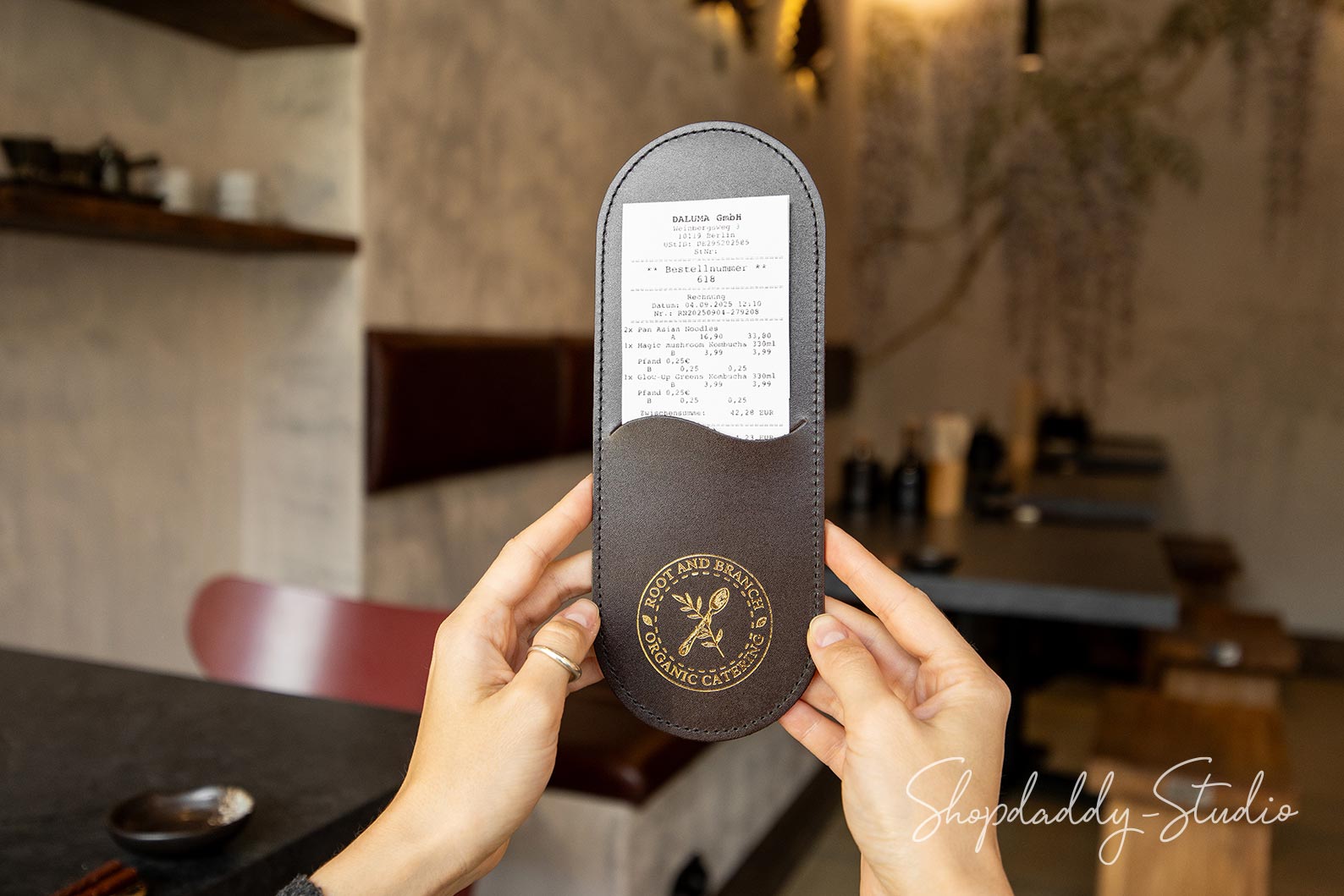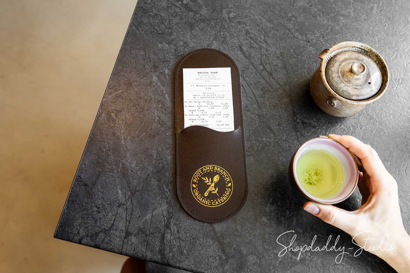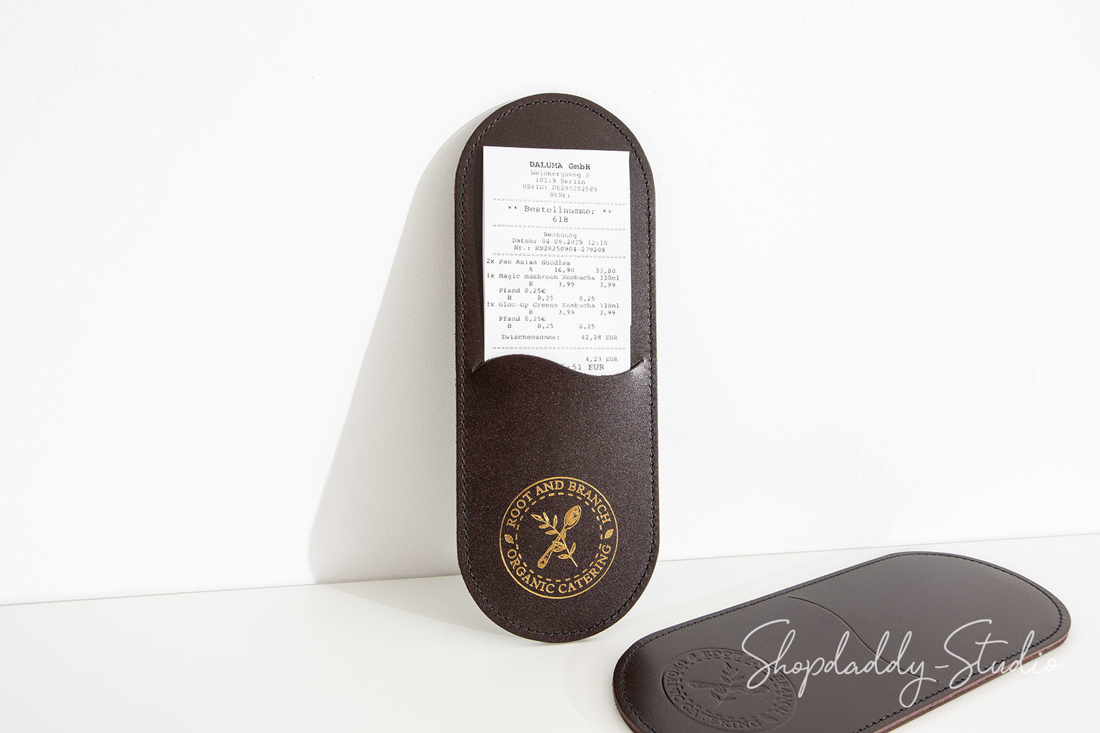 Verleihen Sie Ihrem Service mit diesem eleganten, minimalistischen Rechnungshalter eine besondere Note. Handgefertigt aus Vollnarbenleder, überzeugt er durch eine edle Haptik und eine hochwertige Optik. Das Kellnerbuch ist für den täglichen Einsatz konzipiert, da es wasserabweisend und leicht zu reinigen ist. Ideal für Restaurants und Cafés – auf Wunsch kann es mit Ihrem Logo personalisiert werden, um jede Rechnung stilvoll und markengerecht zu präsentieren.