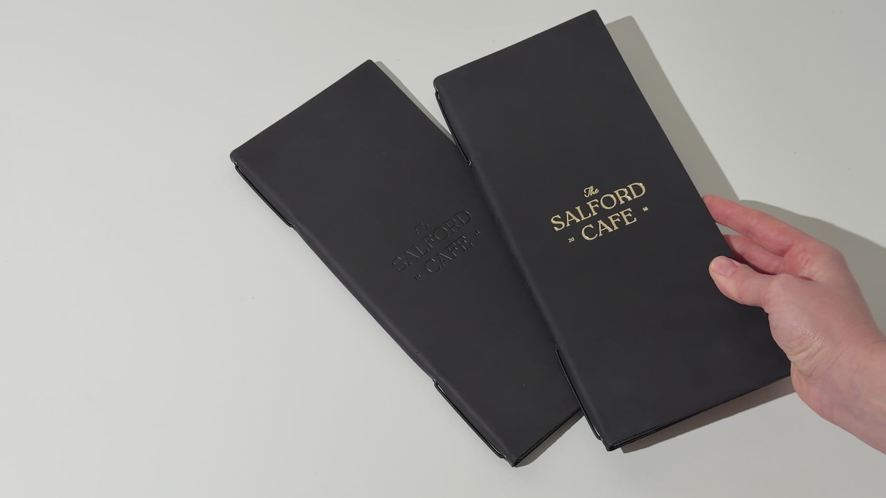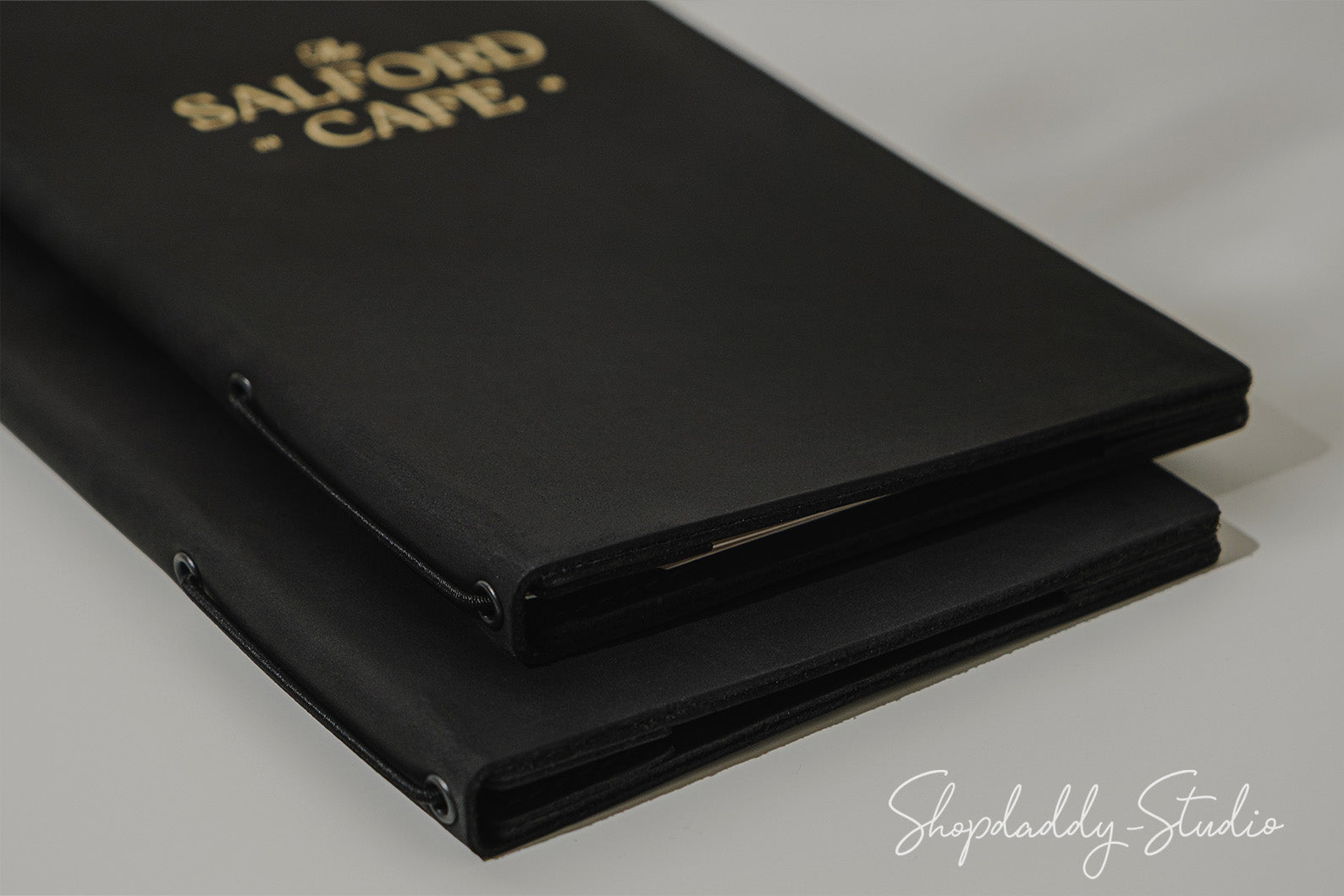 Auf dem Foto: DIN A4/2 Leder-Menühülle (Schwarze)