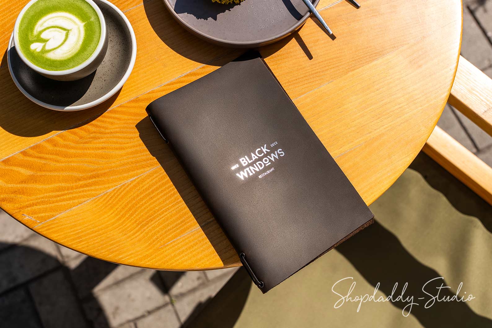 - Ihr Logo kann eingeprägt werden (separat zu bezahlen; das Logo eines anderen Restaurants ist als Beispiel angegeben)
