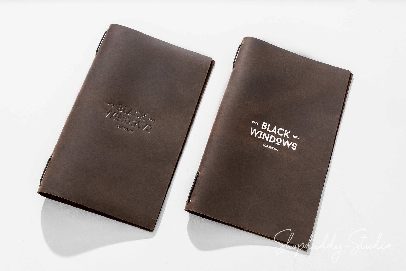 Unsere personalisierbaren Leder-Menühefte bieten eine perfekte Mischung aus Stil und Haltbarkeit. Wählen Sie Ihre bevorzugte Größe und Lederfarbe, die zu Ihrer Marke passt. Die Speisekartenmappe verfügt über zwei elastische Bänder für die sichere Platzierung des Papiers; jede Speisekartenhülle kann auch Ihr Logo tragen, mit Prägung oder Gravur.